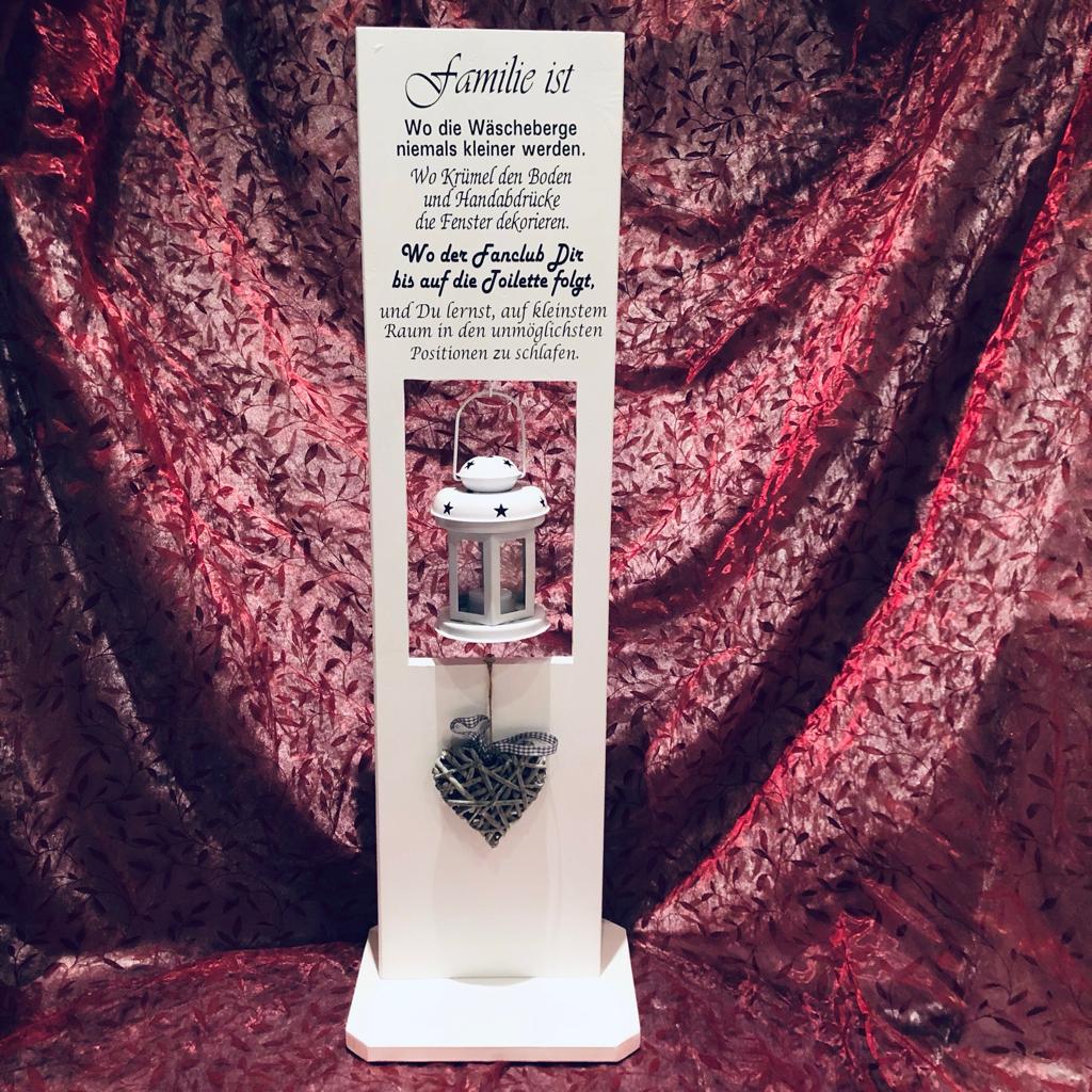 Holzaufsteller-Dekostele weiß-anthrazit mit Spruch und Laterne
