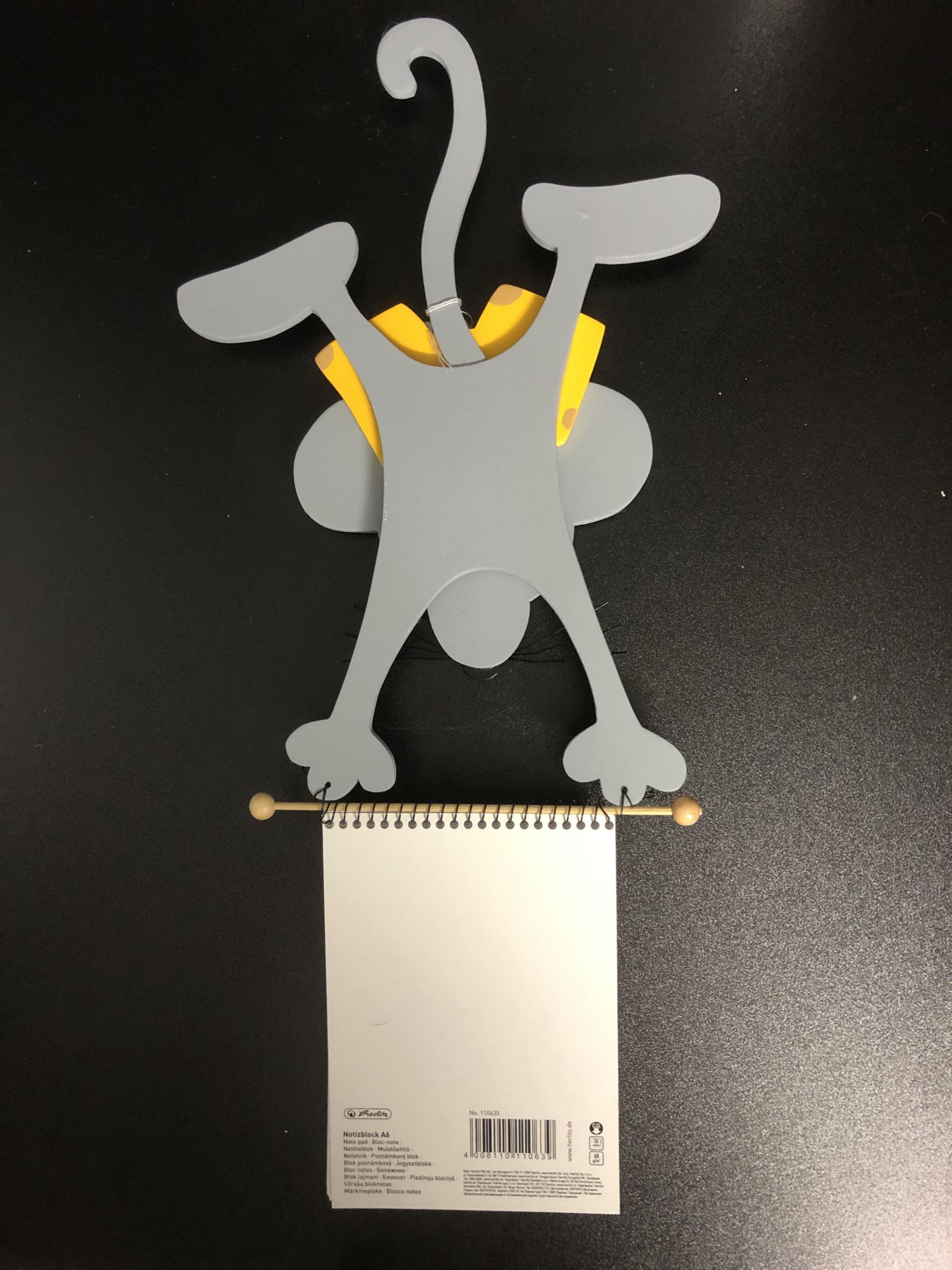 Maus und Hase sind aus 6 mm Pappelsperrholz gefertigt. Bemalt ist jedes einzelne Teil mit Acrylfarbe und zum Schluss mit Seidenmatt-Lack Spray auf Acrylbasis besprüht. Somit kann alles auch mal feucht abgeputzt werden. Die linke Kugel ist nur aufgesteckt, damit der Block gewechselt werden kann.